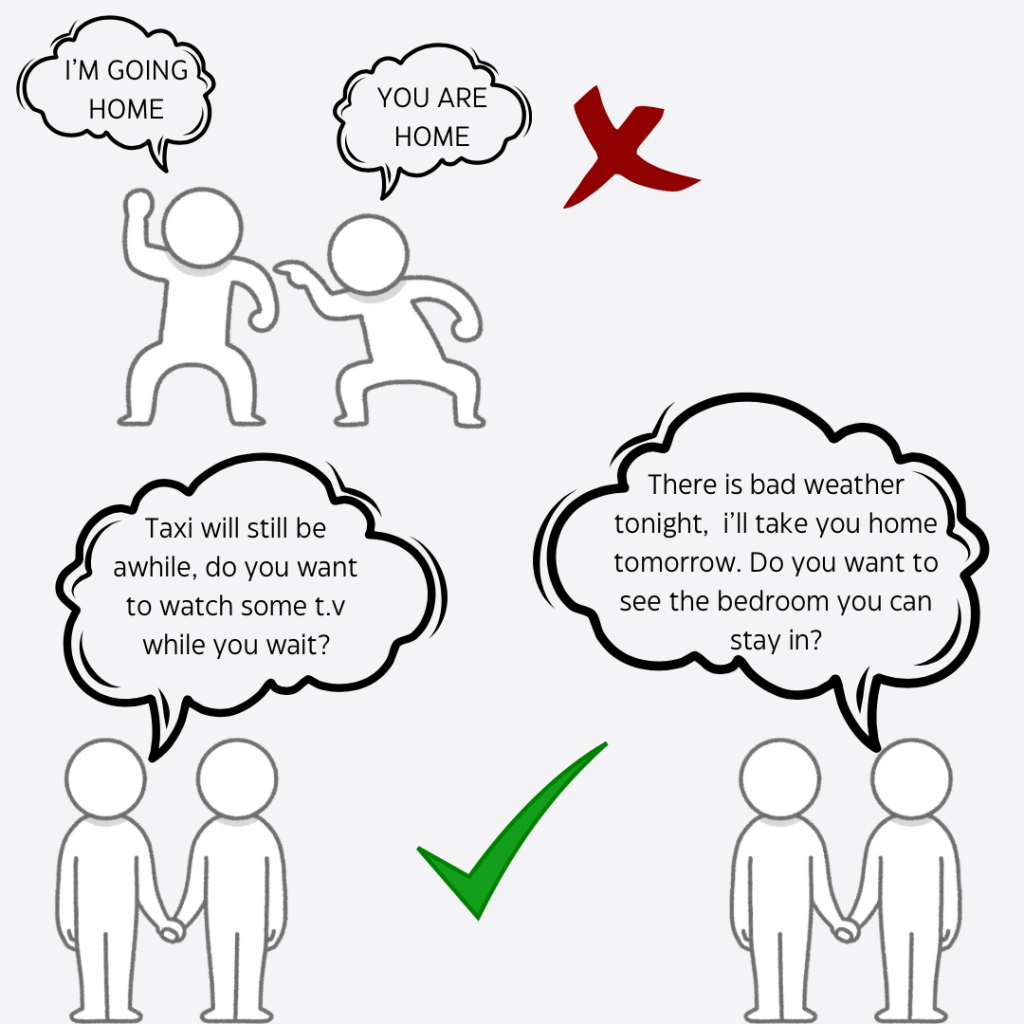 - It’s important to keep a calm demeanor so the person emotions aren’t intensified by our emotions.